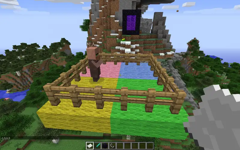 記事のタイトルにも書いたが、村人をプレイヤーから遠い場所にスポーンさせてしまったため、